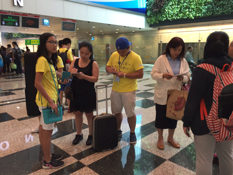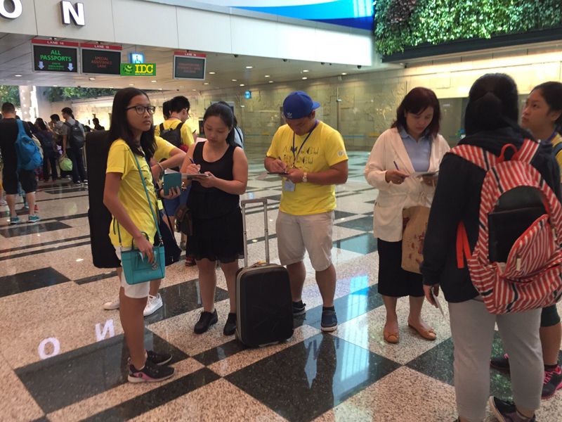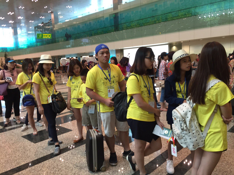 Đoàn đến Singapore an toàn,các bạn đang rất háo hức cho chuyên đi.